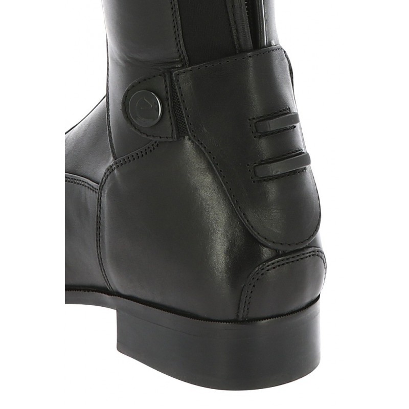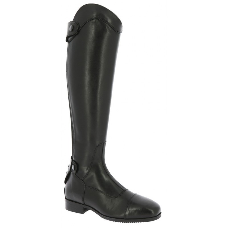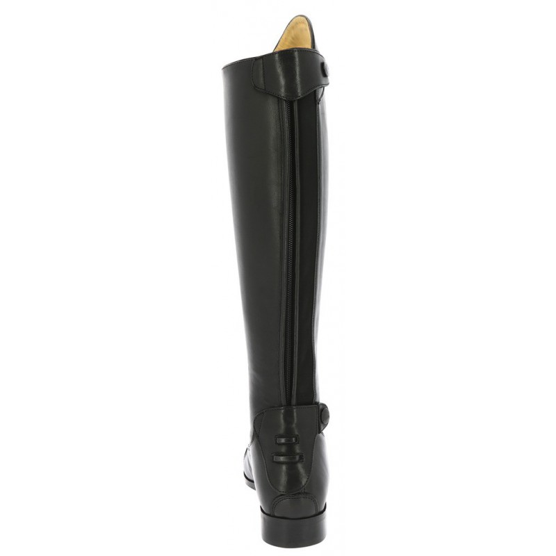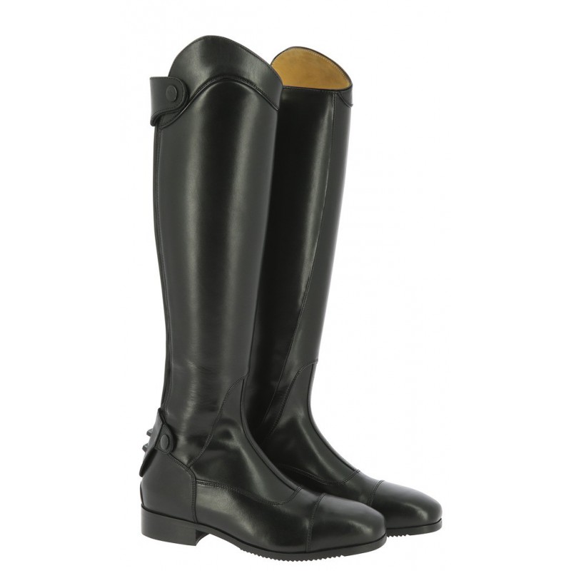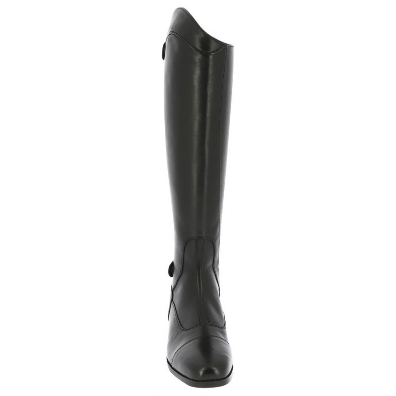 Элегантные сапоги для верховой езды из очень мягкой телячьей кожи премиум качества. Подкладка также выполнена из телячьей кожи и обеспечивает оптимальную воздухопроницаемость. Кожаный защитный клапан с упорами для шпор, который закрывает нижнюю часть молнии. Эластичная резиновая вставка по бокам задней молнии позволяет увеличить объем голенища до 3 см. Цвет: черный