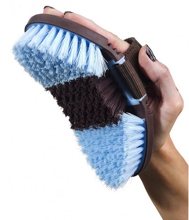 Мягкая щетка с искусственной щетиной на гибкой пластиковой основе. Хорошо вытирает пыль с лошади и помогает навести блеск. Также можно использовать для мытья лошади. Длина — 18 см, ширина — 9 см, высота ворса — 2,5 см.