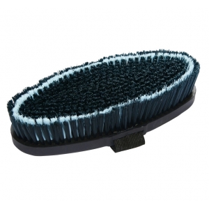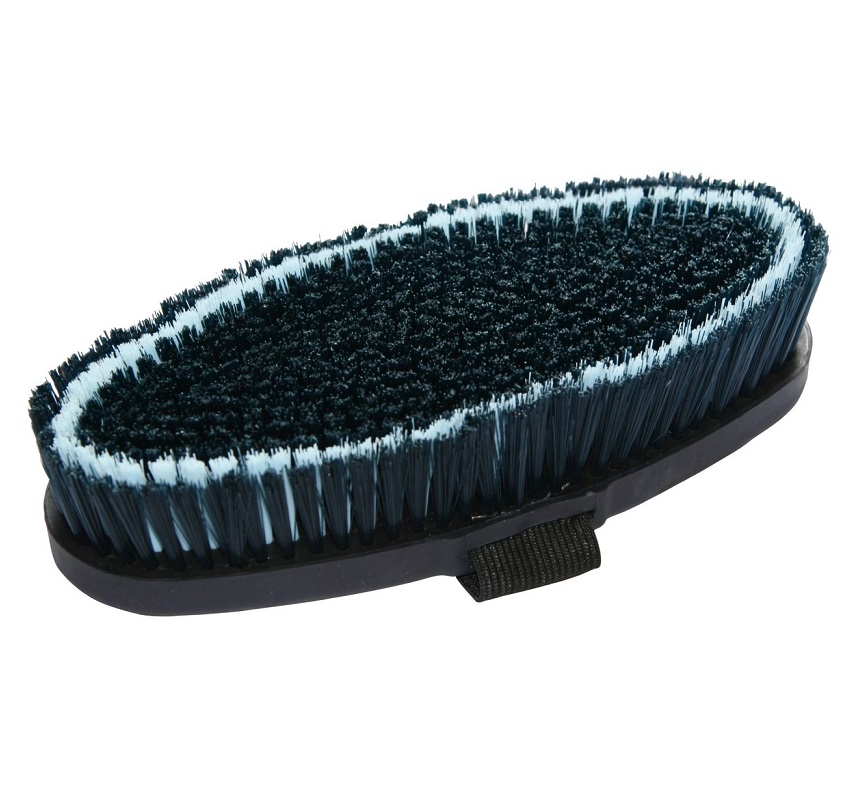 Щетка удобной формы на прорезиненной нескользящей основе с ремешком для руки. Искусственная щетина средней жесткости. Щетки средней жесткости отлично подходят для ежедневного применения. Размер Д 20 х Ш 10 см. Длина щетины 3 см.