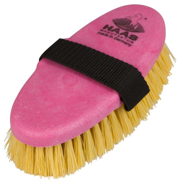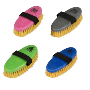 Щетка с жесткой искусственной щетиной на литой пластиковой основе с ремешком для руки. Жесткая щетина эффективно избавляет от высохшей грязи и склеившейся шерсти. Чистите, делая прямые движения рукой, чтобы щетина прошла через шерсть, и смела грязь и лишнюю шерсть. Щетки с жестким ворсом не рекомендуется использовать для чувствительной участков лошади: на морде, ушах, животе и любой стриженой части тела. Для этого можно использовать влажное полотенце. Размер 20 Х 8,5 см. Длина щетины - 3 см.