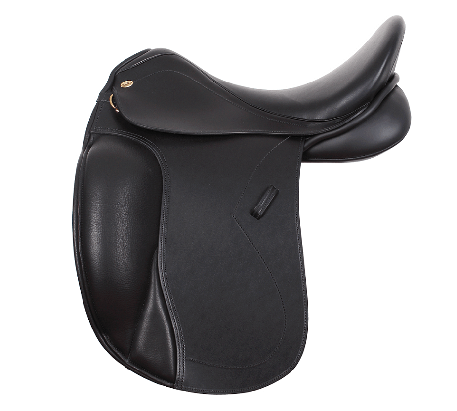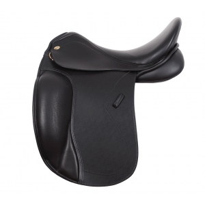 Производитель: Kentaur, Чехия Выездковое седло с глубокой посадкой для лошадей нормального типа или с не высокой холкой. Используется в основном для выездки, для любителей и спортсменов. Отличительная особенность этого седла - большие передние упоры и анатомически сформированное под эти упоры крыло, обеспечивают отличную поддержку бедра всадника. V-образные приструги. Седло полностью изготовленно из нескользящей телячьей кожи двойной выделки. Подушки седла в качестве наполнителя содержат искусственную шерсть с эластичными волокнами, благодаря которым седло хорошо обминается и адаптируется к спине лошади. Эта шерсть обладает прекрасными амортизационными свойствами и сохраняет свою эластичность в течении долгих лет службы. Ленчик с регулируемым размером, сделан из стекловолокна, усиленного пружинной сталью. Передняя часть ленчика укреплена железной скобой, ширина которой определяет ширину ленчика ленчик 2 - 30-31см (между узким и средним) соответствует углу в 73°, ленчик 3 - 32-33 см (средне-широкий), соответствует уголу в 83°). При необходимости можно изменить ширину ленчика на один размер у спецалиста имеющего подобный опыт работы на любом оборудовании для переобжимки ленчика.