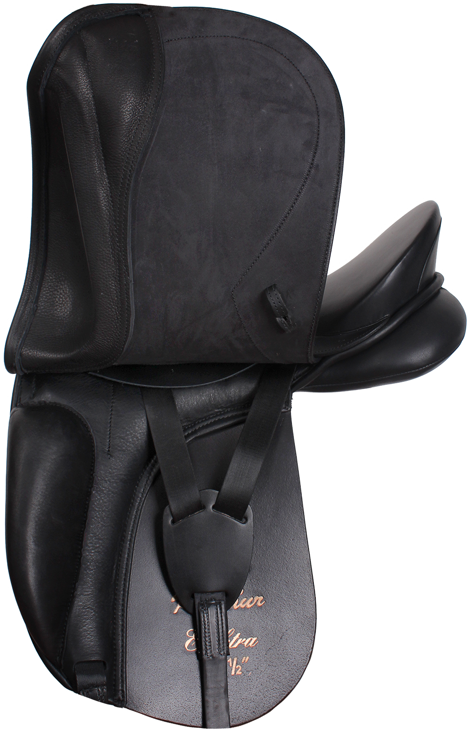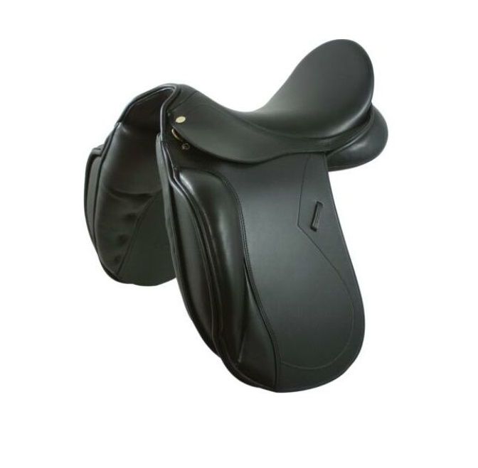 Производитель: Kentaur, Чехия Классическое выездковое седло с глубокой посадкой. Седло с вырезом под холку для лошадей нормального типа или с высокой холкой. Используется в основном для выездки, для любителей и спортсменов. Отличительная особенность этого седла - большие передние упоры и анатомически сформированное под эти упоры крыло, обеспечивают отличную поддержку бедра всадника. V-образные приструги. Материал телячья кожа. Место седалища, упоры и подушки выполнены из нескользящей телячьей кожи двойной выделки. Подушки седла в качестве наполнителя содержат искусственную шерсть с эластичными волокнами, благодаря которым седло хорошо обминается и адаптируется к спине лошади. Эта шерсть обладает прекрасными амортизационными свойствами и сохраняет свою эластичность в течении долгих лет службы. Ленчик с регулируемым размером, сделан из стекловолокна, усиленного пружинной сталью. Передняя часть ленчика укреплена железной скобой, ширина которой определяет ширину ленчика ленчик 2 - 30-31см (между узким и средним) соответствует углу в 73°, ленчик 3 - 32-33 см (средне-широкий), соответствует уголу в 83°). При необходимости можно изменить ширину ленчика на один размер у спецалиста имеющего подобный опыт работы на любом оборудовании для переобжимки ленчика.