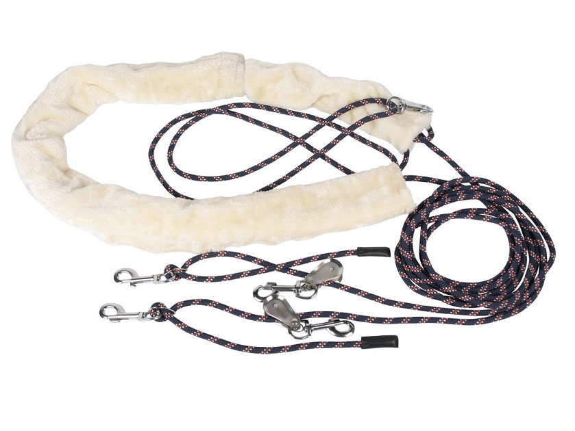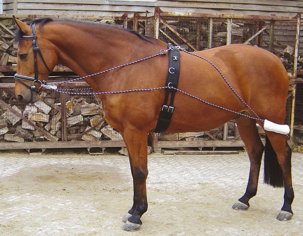 Практически все виды существующих развязок крепятся к подпруге или седелке и таким образом только тянут голову лошади к туловищу, неестественно напрягая шею. При этом совершенно упускается из виду развитие мускулатуры спины, передних и задних конечностей как единого целого. Молодым лошадям можно дать надежду стать сильными, с правильно функционирующими мускулами. Упитанных лошадей можно привести в порядок, а лошадям со слабой мускулатурой – накачать мышцу при грамотном использовании вожжей системы Пессоа. Шлея Пессоа, вызывая дискомфортное состояние во рту лошади, заставляет её искать наиболее рациональное состояние затылка и положение задних конечностей, позволяющее тем самым уменьшить дискомфорт ощущений. Данное приспособление может использоваться на любом этапе работы с лошадью, начиная с самого раннего. Размер Full.