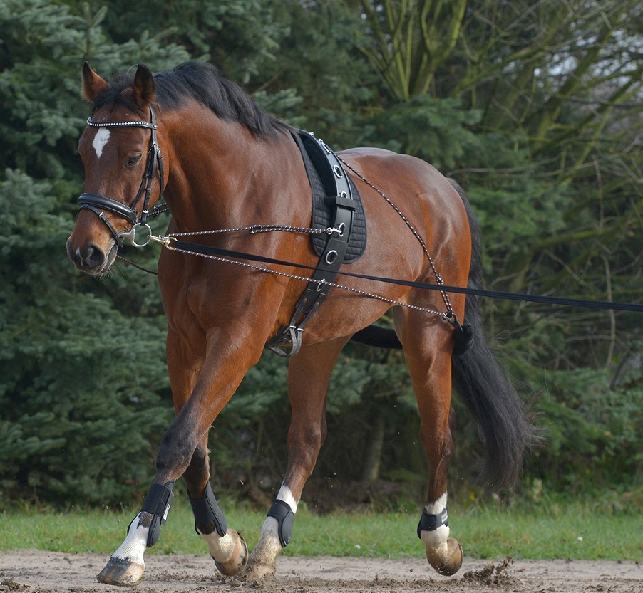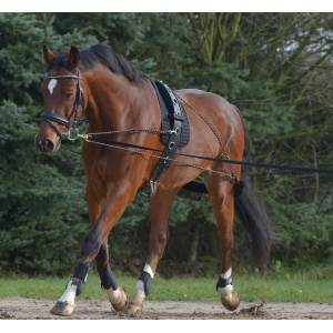 Качественно выполенная тренинговая система для работы на корде. При работе задействованы все важнейшие группы мышц, лошадь учится подводить задние ноги под корпус, тем самым находит равновесие, что является очень важным в конном спорте. Так же лошадь учится сгибаться в боку и правильно работать с поводом. Хороша на любом уровне подготовки и в любой дисциплине. Размер: Cob-Full