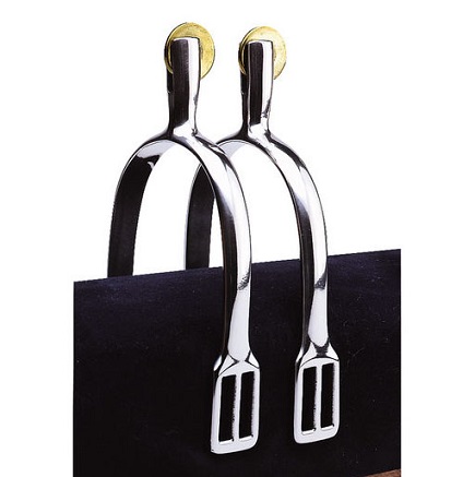 Шпоры имеют прямой шенкель длиной 30мм с подвижным медным колесиком с диаметром 15 мм на конце. Выполнены из высококачественной нержавеющей стали.