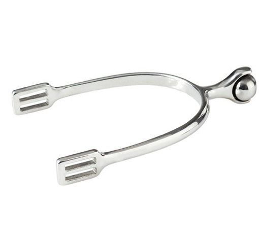 Такая форма шпор помогает всаднику мягко воздействовать на лошадь. Вращающийся шарик не позволяет всаднику поднимать пятку во время работы шпорой. Шпора с шенкелем 3 см. Материал: высококачественная нержавеющая сталь.