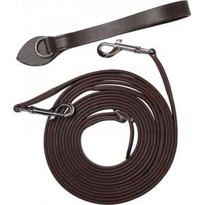Гладкий скользящий повод из мягкой итальянской кожи премиум класса. Съемная петля позволяет пристегивать шпрунт к подпруге. Шпрунт - это вспомогательный, скользящий повод, идущий от подпруги (снизу или по бокам) через трензельные кольца в руки всадника. Не даёт лошади высоко поднимать голову и наладить контакт с лошадью в некоторых ситуациях. Цвет: черный. Длина повода 5 метров. Ширина 16 мм.