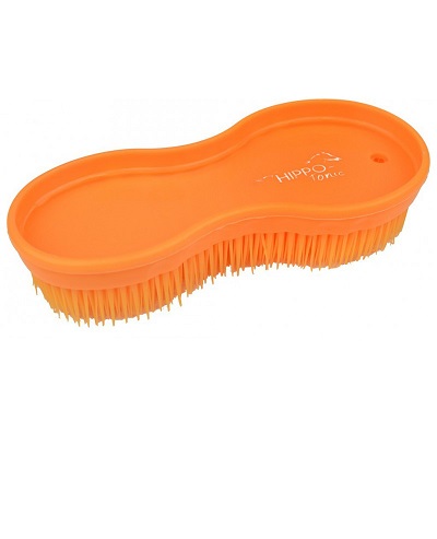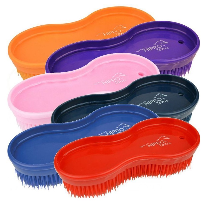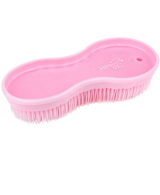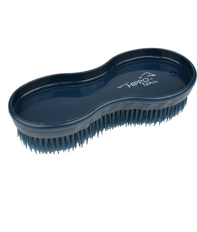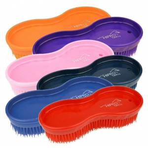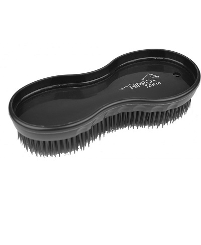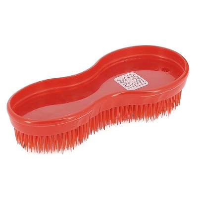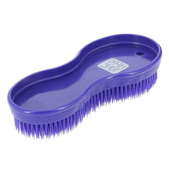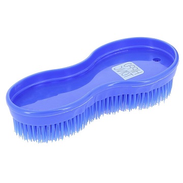 Скребница с пластиковой щетиной, которая прекрасно удаляет пот, засохшие пятна и грязь с шерсти и копыт лошади. Такими щетками легко приводить шерсть лошади в порядок, а удобная форма и небольшой размер, позволяют чистить морду и ноги.