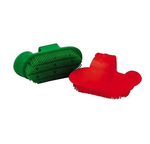 Овальная скребница с длинной мягкой пластиковой щетиной массирует кожу лошади, и в то же время удаляет пыль и грязь. Прекрасно подходит для линяющих лошадей. Цвет: ассортимент. Длина 18 см. Ширина 8,5 см.