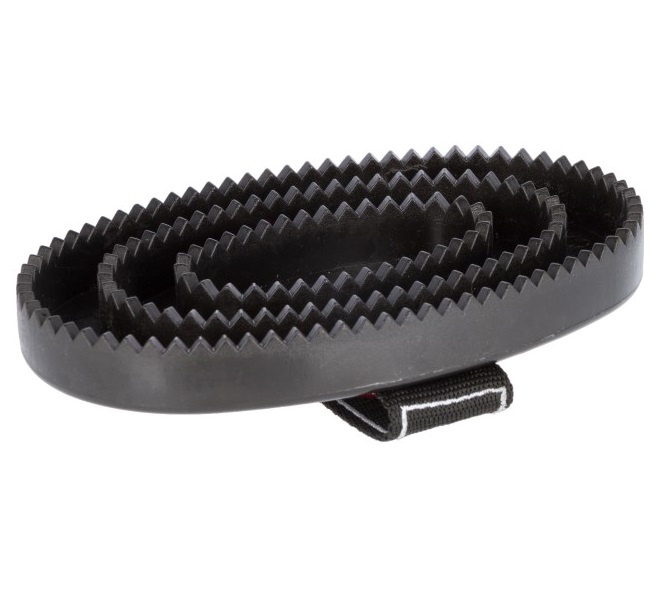 Скребница из пластика массирует кожу лошади, и в то же время удаляет пыль и выпавшую шерсть. Прекрасно подходит для чувствительных лошадей. Размер: длина 16 см, ширина 11 см.