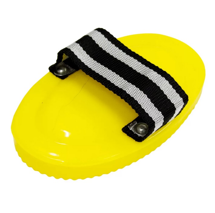 Скребница из пластика массирует кожу лошади, и в то же время удаляет пыль и выпавшую шерсть. Прекрасно подходит для линяющих лошадей. Легко надевается на руку. Длина - 16,5 см. Ширина - 10,5 см