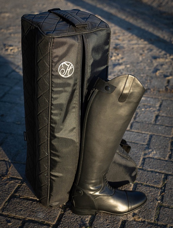 Шикарная сумка для сапог из блестящей ткани. Оснащена двумя раздельными отделениями с молниями для ваших сапог и съемным регулируемым плечевым ремнем. Высота: 66 см Длина: 39 см