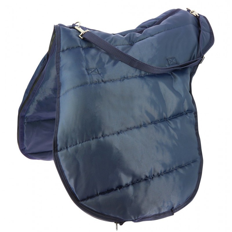 Сумка для транспортировки седла, послужит отличной защитой от внешних повреждений. Сделана из прочного стёганного нейлона и полиэстера, внутри имеются специальные ремни для фиксирования седла, снаружи удобная, регулируемая ручка на карабинах и молния по краю чехла. Удобство и надёжность для перевозки ваших сёдел