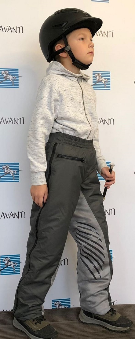 Конструкция брюк с высоким поясом обеспечивает максимально удобную посадку в седле и защищает поясницу маленького всадника от продувания. Подобранные ткани гарантируют практичность и комфорт. По бокам располагаются застежки-молнии, что значительно ускоряет процесс надевания. Нескользящая лея, непромокаемая и непродуваемая плащевка, плотностью 380 г/м.кв. и конечно же гигроскопичный, мягкий, с антипиллинговой пропиткой флис, плотностью 300 г/м.кв.