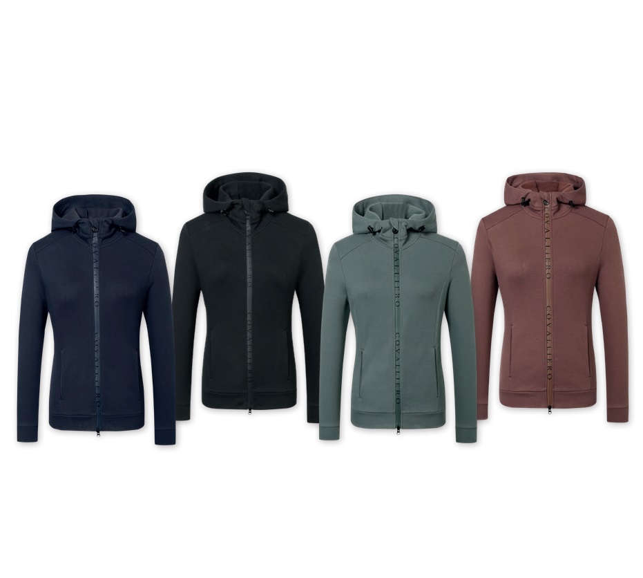 Женская толстовка с капюшоном от Covalliero для верховой езды и повседневной жизни. Двусторонняя молния с логотипом, два кармана для рук на молнии. Толстовка изготовлен из смеси мягкого xлопка и полиэстра с теплым начесом внутри. Материал обеспечивает превосходный комфорт при ношении. Состав: xлопок 50%, полиэстер 50%. Машинная стирка при 30 С