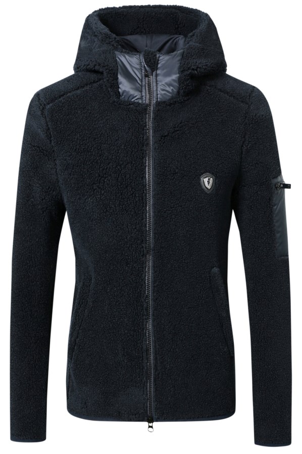 Женская толстовка с капюшоном от Covalliero для занятий в прохладное время года. Выполнена из очень мягкого и уютного Teddy флиса. Стильный прорезной карман на рукаве и два передних кармана для рук на молнии. Двусторонняя молния и фирменный логотип. Состав: 100% полиэстер. Машинная стирка при 30 С
