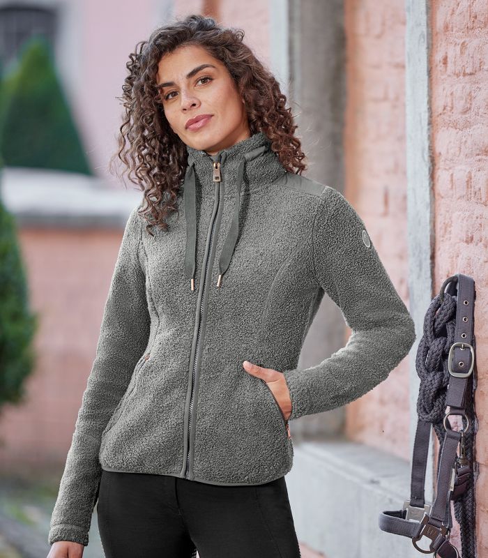 Уютная толстовка из мягкого флисового материала Teddy. Два закрытых кармана на молнии. Высокий воротник с тесьмой для регулировки ширины. Материал 100% полиэстер. Легко стирается в стиральной машине при 30 ° С . Размеры европейские