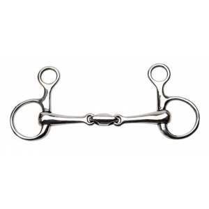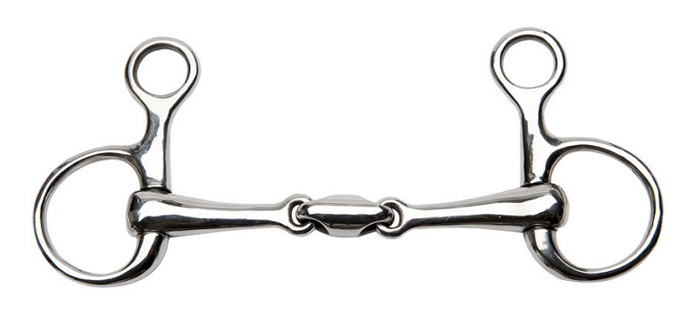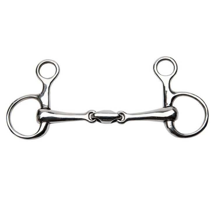 Место крепления к уздечке находится выше основного кольца, к которому крепится грызло и повод. Это обеспечивает более комфортный боковой контакт трензеля со всей головой лошади, помогает лучшему ответу лошади на полуоддержки, прямому сгибанию и способствует приподниманию передней части лошади, имеющей баланс на переду. Трензель из высококачественной нержавеющей стали с грызлом-восьмеркой и небольшими рычагами, усиливающими воздействие повода. Восьмерка в отличие от простого грызла равномерно распределяет давление на рот лошади, создавая U-образную дугу и очень мягко, но четко воздействует . Толщина грызла 17мм, диаметр колец 45мм.