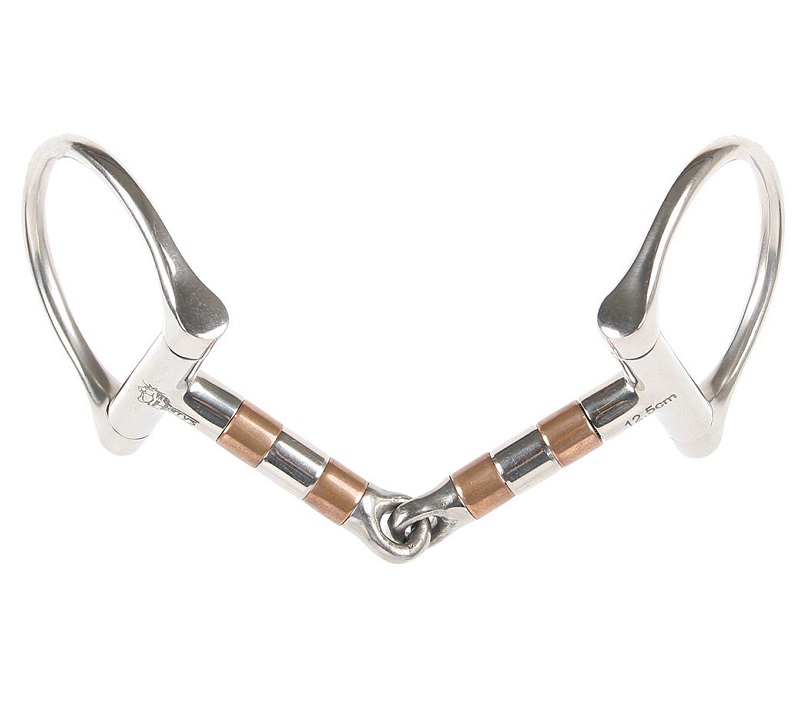 Трензель империал с D-образными кольцами и чередующимися медными роликами и роликами из прочной нержавеющей стали. Большие D-образные кольца создают небольшой рычаг, когда лошадь поднимает голову вверх. Так же D-образная форма служит небольшими усами, не позволяет трензелю переезжать на одну сторону и облегчает управление в поворотах. Медные ролики производят расслабляющее действие и улучшают слюноотделение, лошадь может играть ими во время работы. Так же вращающие ролики не дадут закусить железо. Империал фиксирует положение железа во рту, делая его более стабильным и сохранит губы лошади от защемления. Толщина грызла 13 мм, диаметр колец 60 мм.