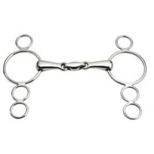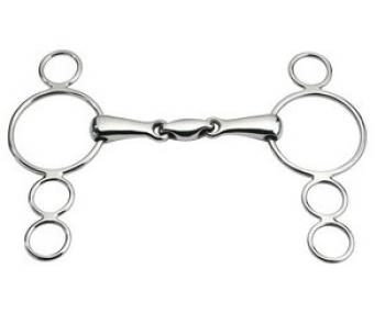 Мягкий анатомический трензель с восьмеркой из нержавеющий стали. В зависимости от того, к какому кольцу пристегнут повод, этот вид трензеля может выполнять функции трензеля, пеляма или мундштука. Очень популярен в конкуре. Идеален для лошадей с чувствительным ртом. Подбородый ремешок крепится за верхние кольца. При натяжении повода создается рычаг. Чем ниже пристегнуты поводья, тем сильнее действие рычага. Чем туже подтянута цепочка, тем строже действие трензеля. Оказывает давление на челюсть и затылок лошади, тем самым, способствуя сбору. Толщина грызла 18 мм. Длина рычага 180 мм