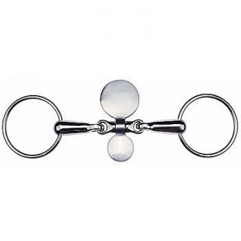 Трензель с лопаткой предназначен для коррекции положения языка во рту лошади. Цель подвеса лопатки – прижать язык сверху внутри рта так, чтобы лошадь не смогла его перекинуть через грызло. Многие лошади делают это в стремлении уйти от контакта или неприятного воздействия при активной работе. Лопатка - очень хорошая вещь для отучения лошади от вредной привычки. При этом железо опускают ниже, провоцируя лошадь на перекидывание языка, в то же время, не давая ей шанса сделать это из-за присутствия во рту лопатки. Материал нержавеющая сталь. Толщина грызла 19 мм. Ширина колец 65 мм