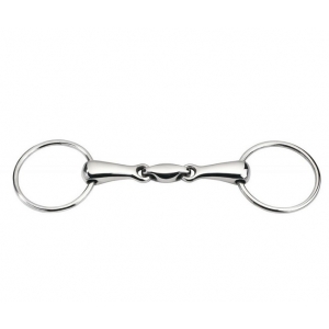 Анатомическое железо хорошо ложится во рту, что повышает комфорт лошади и действие ваших рук становится более точным. Трензель очень мягкий, но при сильном давлении округлая серединка в форме "боба" будет воздействовать на середину языка, требуя от лошади подчинения. Высококачественная нержавеющая сталь. Толщина грызла 21 мм. Ширина колец 65 мм.