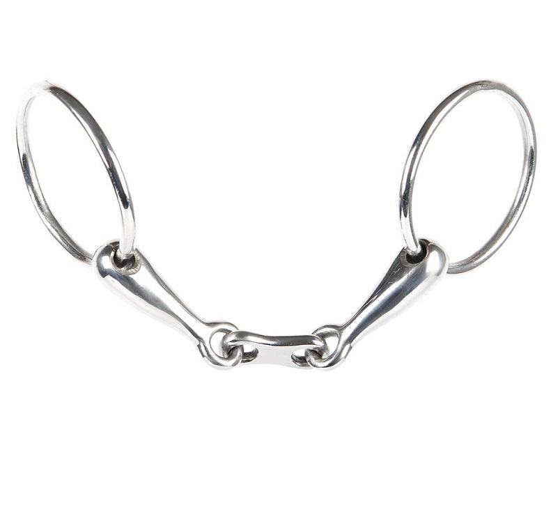 Французский трензель-восьмерка с плоской, горизонтально расположенной серединной частью, обеспечивает лошади максимум комфорта. Грызло трензеля оставляет достаточное количество пространства для языка лошади и не травмирует его. Форма трензеля также уменьшает жесткое прямое давление на верхнее нёбо. Идеален для лошадей с низким небом. Считается самым мягким. Толщина грызла 20 мм. Ширина колец 65 мм. Нержавеющая сталь
