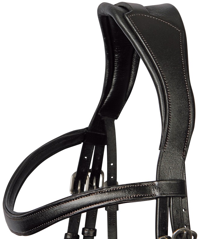 Элегантная уздечка из очень мягкой качественной кожи с анатомическим U-образным налобником. Широкий затылочный ремень с мягкой подложкой и свободной зоной в области ушей. В комплект входит тесьмяный повод с нашивками против скольжения. Материалы: 100% кожа, пряжки из нержавеющей стали.