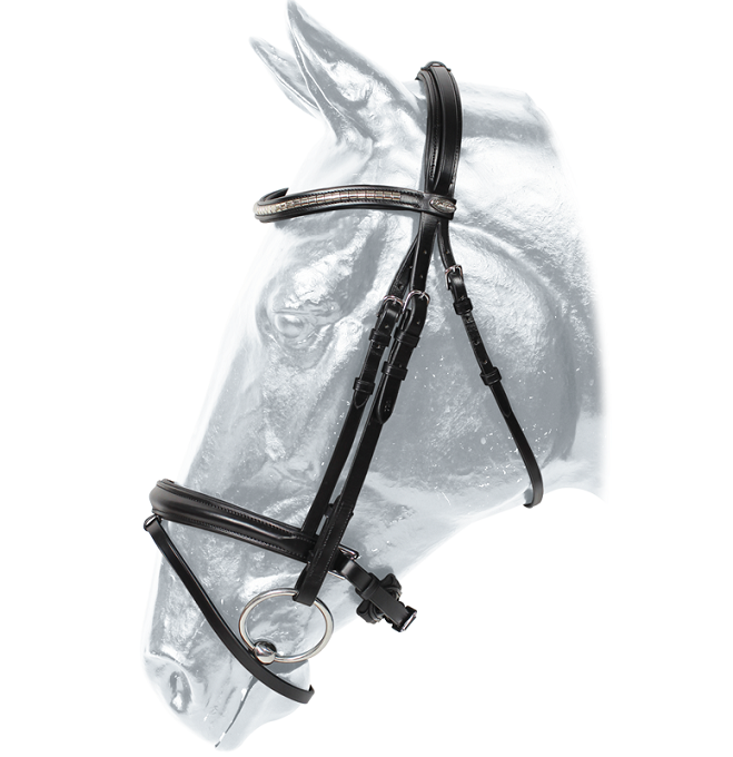 Уздечка из итальянской кожи высшего качества. Налобный ремень украшен оригинальной серебристой металлической цепочкой. Конструкция уздечки позволяет легко трансформировать ее в оголовье и обратно. Хромированная фурнитура. Носовой, налобный и затылочный ремни с мягкой подкладкой. Съемный самозатягивающийся шведский капсуль В комплект входит тесьмяный повод.