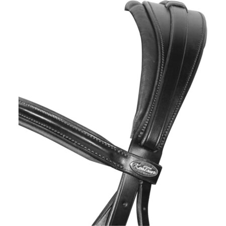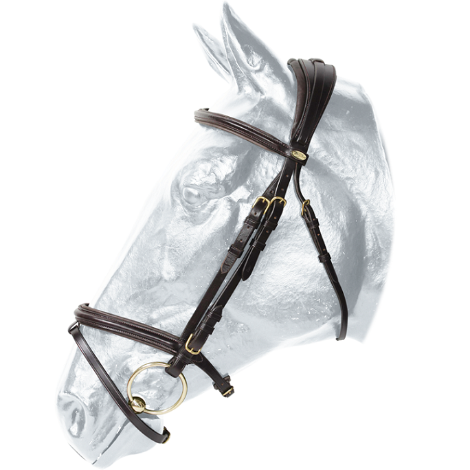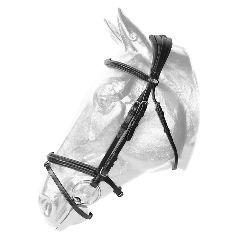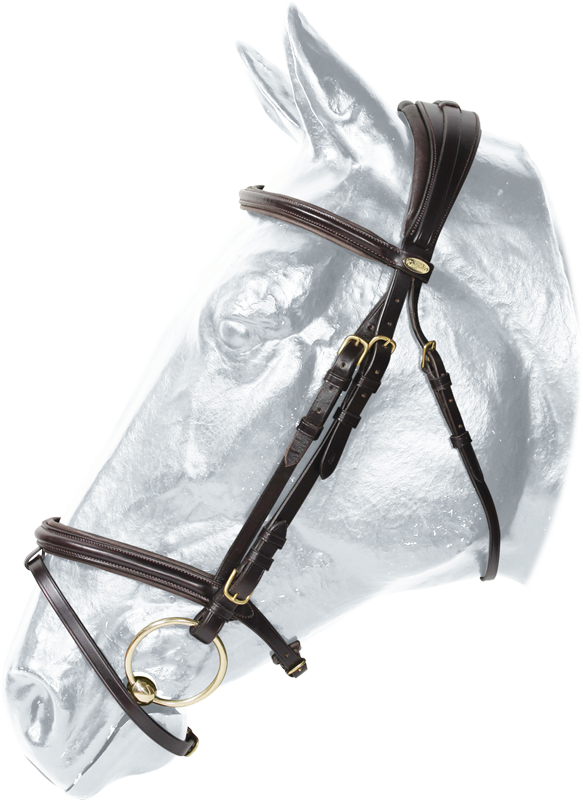 Классическая уздечка из итальянской кожи высшего качества. Широкий анатомический затылочный ремень, сужающийся в области ушей, снимает напряжение с затылка и шеи. Носовой, налобный и затылочный ремни с мягкой подкладкой. Съемный английский капсуль. У черного оголовья - серебристая фурнитура, у коричневого — желтая. В комплект входит тесьмяный повод.
