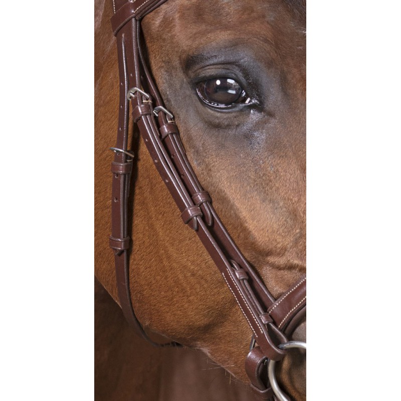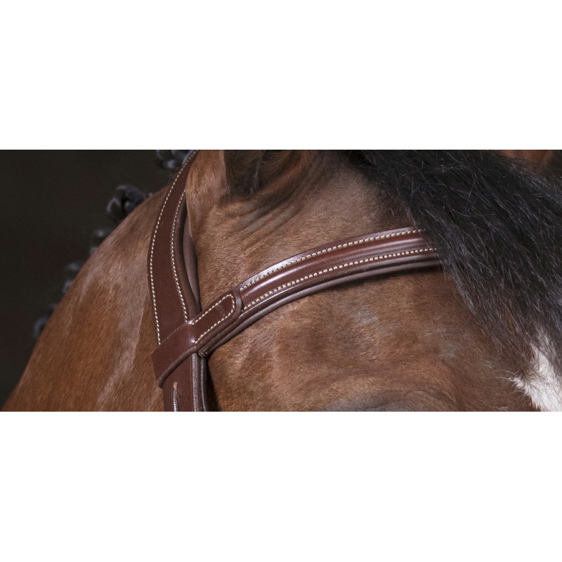 Мягкая кожаная уздечка, украшенная декоративной отстрочкой, которая придает утонченный, элегантный вид. Эта уздечка премиум-качества с анатомическим капсулем и стальной фурнитурой сочетает в себе прекрасный вид и отличную цену.