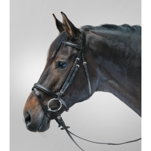 Оголовье из надежной износостойкой кожи с превосходным соотношением цена/качество. Мягкая подложка капсуля и налобника. Никелированная фурнитура. В комплект вxодит тесьмяный повод шириной 19 мм.