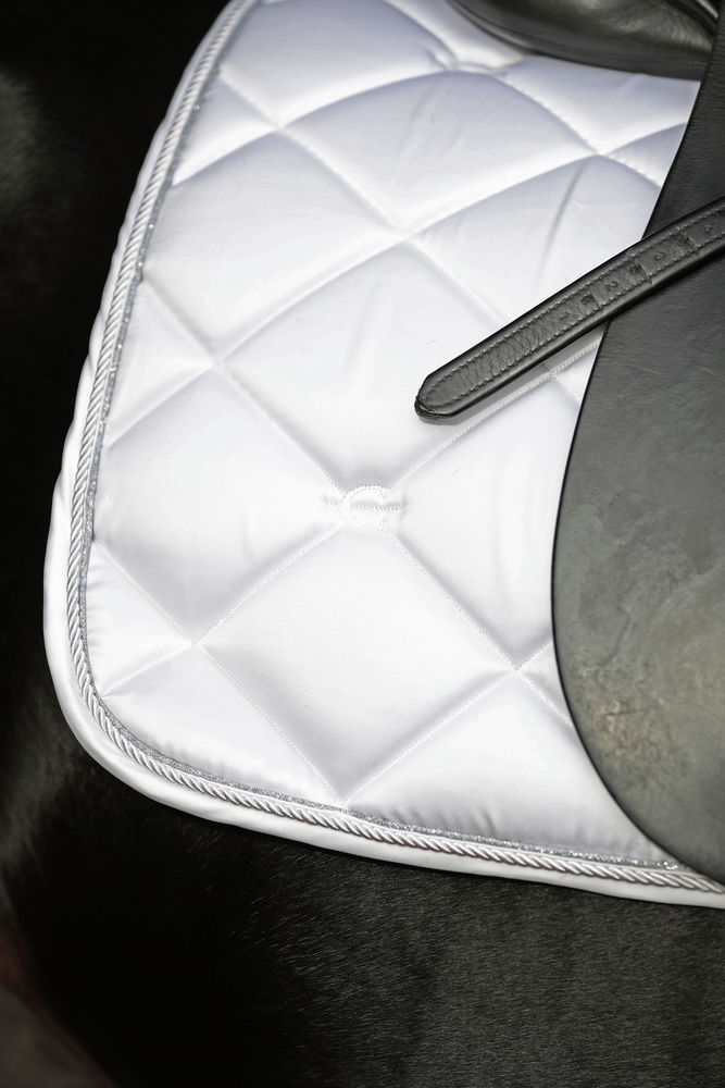 Красивый вальтрап анатомической формы с атласным блеском и долговечным внешним материалом. Вставка из мягкой пены поддерживает переднюю часть седла и не дает скользить седлу. Быстросохнущий и дышащий материал с внутренней стороны. Вальтрап украшен кантом-косичкой и аппликацией из мелких блесток вдоль канта . Отлично сочетается с бинтами серии Empara. Машинная стирка при 30°С.