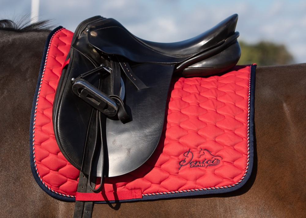 Выездковый вальтрап анатомической формы. Наполнитель из поролона и синтепона делает вальтрап объемным, что очень важно для амортизации. Внутренняя сторона из материала Coolmesh. Украшен ромбовидной прострочкой, шнур по всему периметру, вышивка Denici Cavalli на левой стороне. Вальтрап хорошо держит форму и легок в уходе. Рекомендуется ручная стирка при температуре 30 градусов.