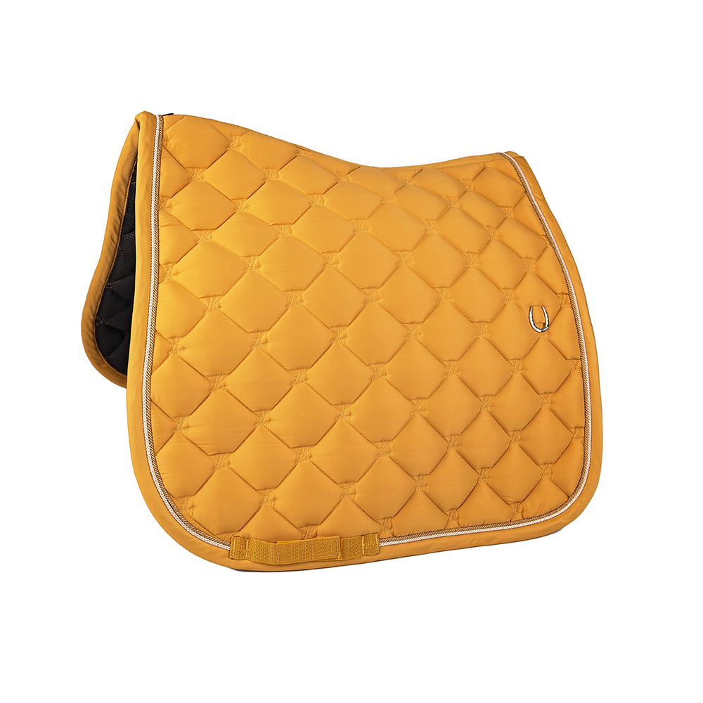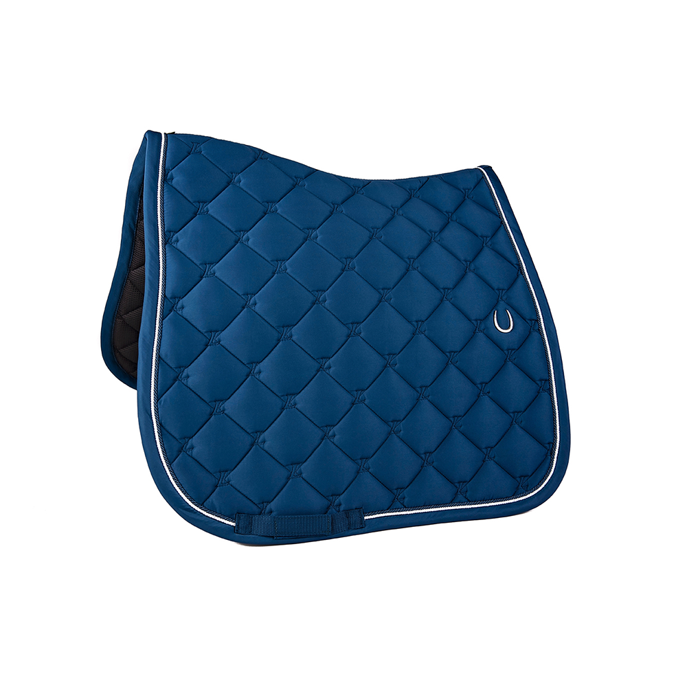 Вальтрап Lami-Cell LC украшен двойным шнурком по краю и логотипом в форме подковы с левой стороны. Очень удобный и амортизирующий этот вальтрап имеет набивку из пены высокой плотности толщиной 5 мм и Synthermax (240 г/кв.м). Дышащая подкладка выполнена из ткани, изготовленной с дополнением бамбуковых волокон. Машинная стирка при 30°С.