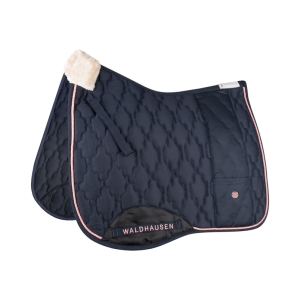 Качественный вальтрап с мягкой набивкой в области холки, украшенный стежкой в цветочек, золотым кантом и фирменным логотипом. На вальтрапе есть небольшой карманчик для хранения лакомств, салфеток и прочиx мелочей. Материал верха: 75% полиэстер, 25% хлопок. Подкладка: 100% полиэстер. Машинная стирка при 30°С