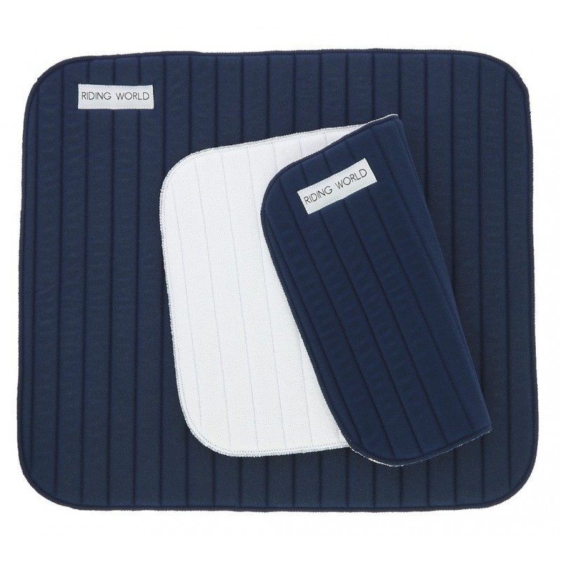 Ватники на задние ноги лошади, заполненные мягкой пеной. Одеваются под бинты (рабочие или денниковые), что бы равномерно распределить давление бинтов на ноги лошади, уберегая их от перетяжек. Вертикально простеганная ткань с мягким уплотнителем. Размер 44 х 50 см. Комплект 2 шт.