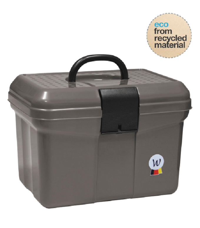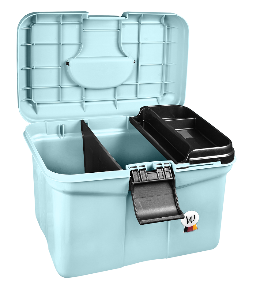 Высококачественный груминг-бокс из переработанного пластика. Идеальный компаньон в конюшне и на турнире. Выдвижная ручка, запираемый замок с защелкой, регулируемая в двух направлениях перегородка, выдвижной отсек для мелких деталей и малый вес. Размер: 42 см x 30 см x 28 см.
