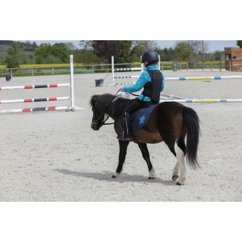 Детский жилет с защитой спины с подкладкой из нескольких слоев легкого и эластичного пенопласта высокой плотности. Передняя застежка-молния, эластичный регулируемый ремень. Съемный чехол, можно стирать вручную: полиэстер. Внешний материал - 85 % полиамид, 15 % полиэстер. Соответствует стандарту безопасности BS EN 1621-2:2014 Уровень 2.