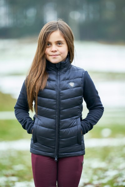 Утепленный и одновременно легкий жилет для верховой езды и повседневной жизни. Высокий воротник-стойка, два боковых кармана для рук, передняя застежка на молнии. Современные материалы и качественный крой обеспечит вам комфорт и удовольствие при его эксплуатации. Жилет украшен фирменным логотипом на груди. Материал: 100% полиэстер. Машинная стирка при 30 градусах. Размеры указаны по росту ребенка.