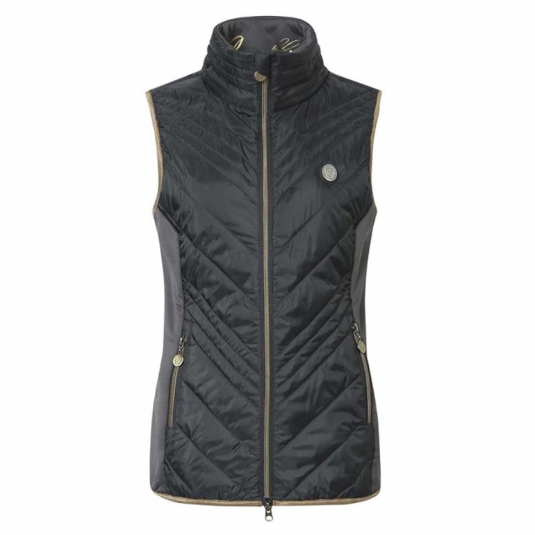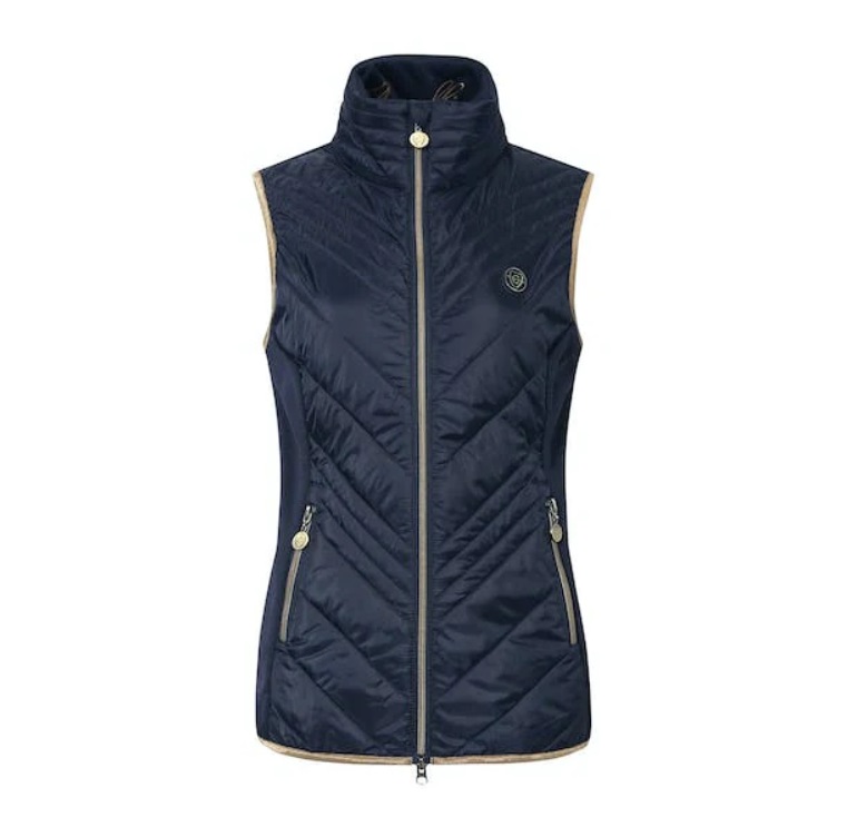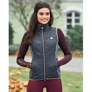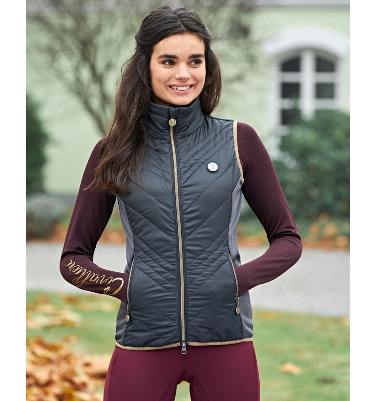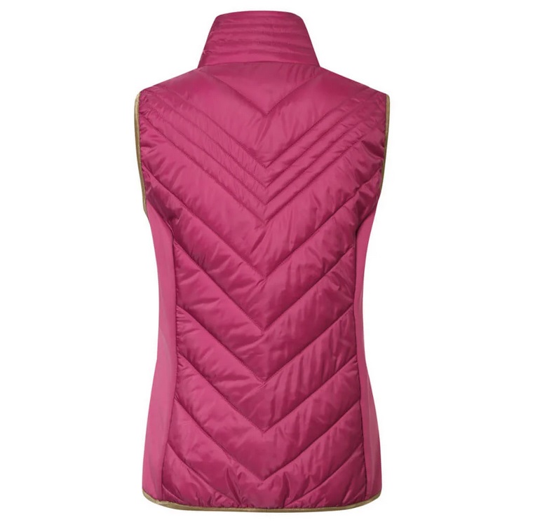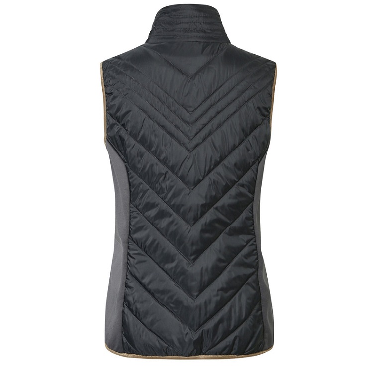 Комбинированная легкая жилетка из микрофибры со стегаными аппликациями из полиэстровой ткани. Мягкий и эластичный материал обеспечивает превосходный комфорт при ношении. Эффектная двусторонняя металлическая застежка-молния. Женственный, приталенный крой. Два кармана для рук. Машинная стирка при 30 С