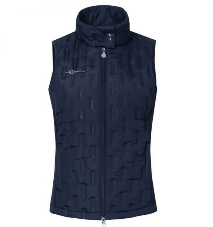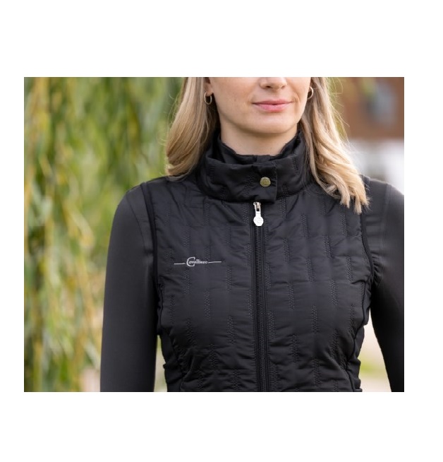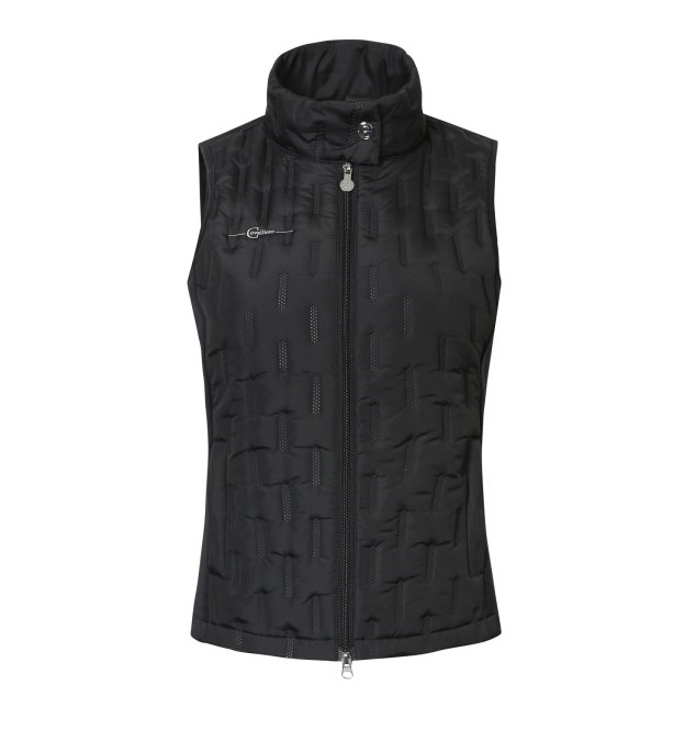 Женский жилет из комбинированной эластичной микрофибры и стеганного материала. Женственный, приталенный крой. Два передни кармана для рук на молнии и воротник-стойка. Состав: верхняя ткань - 100% полиэстер, боковые вставки микрофибра - 95% полиэстер, 5% эластан. Машинная стирка при 30 градусах.