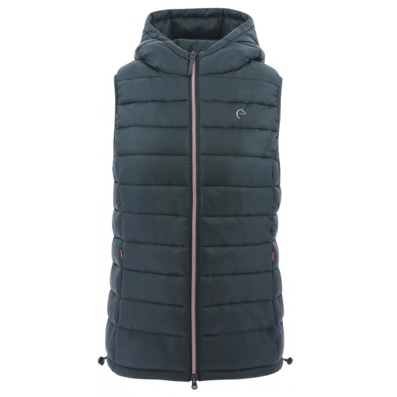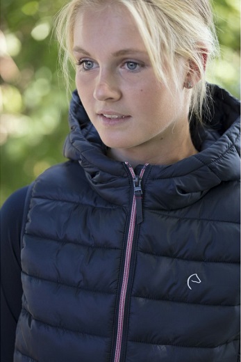 Женский жилет с капюшоном для верховой езды. Жилет выполнен из мягкой водоотталкивающей ткани (внешняя сторона - полиамид, внутрення сторона - полиэстер). Скрытые карманы на молнии с двух сторон. Машинная стирка при 30 градусах