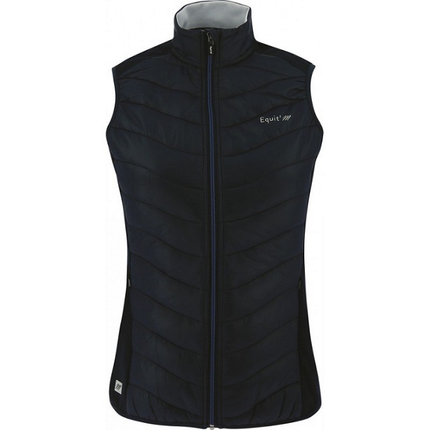 Женский стеганный жилет с эластичными вставками по бокам, которые обеспечивают идеальную посадку по фигуре. Несмотря на обтягивающую посадку, жилет не сковывает движения всадника. Состав: верхняя ткань - 100% полиамид, боковые вставки - 88% полиэстер, 12% эластан. Машинная стирка при 30 градусах.