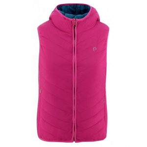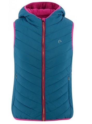 Женственный и одновременно спортивный двусторонний и двухцветный жилет с капюшоном. Жилет выполнен из мягкой водоотталкивающей ткани (внешняя сторона - полиамид, внутрення сторона - полиэстер). Скрытые карманы на молнии с двух сторон. Машинная стирка при 30 градусах