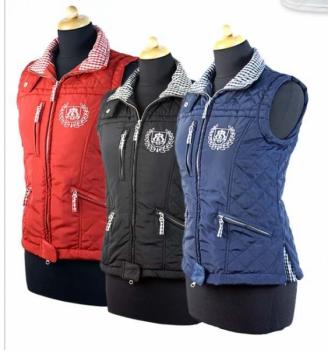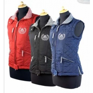 Cтеганный, приталенный жилет с воротником - стойкой. Жилет украшают два боковых кармана на молнии и один горизонтальный, клетчатая в тон подкладка, боковые нижние разрезы со складками и вышитый логотип на груди. Европейские размеры. Машинная стирка при 30 градусах