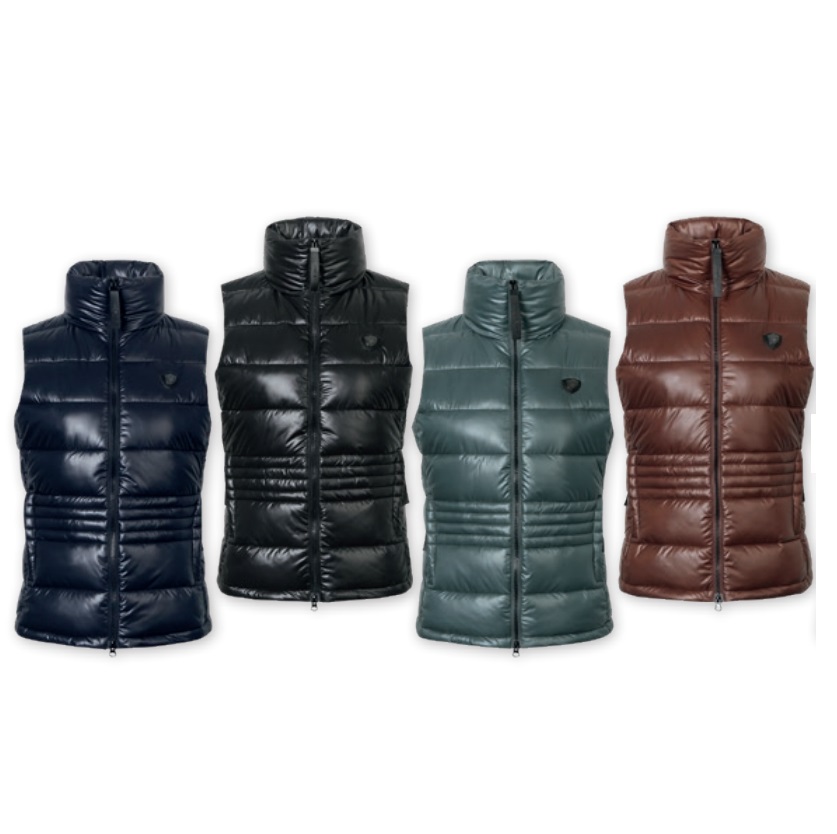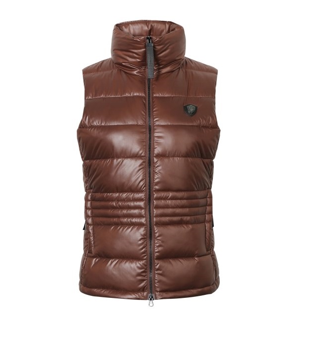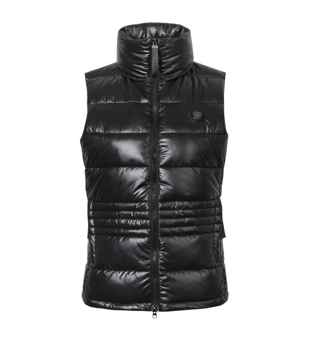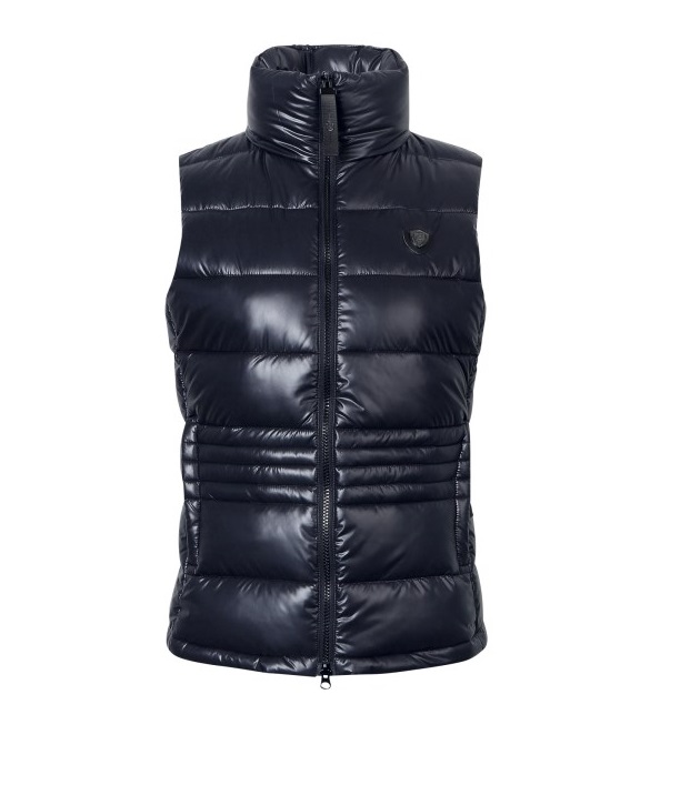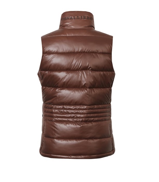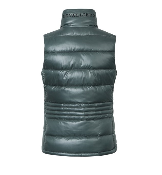 Утепленная женская жилетка из осенне-зимней коллекции Covalliero 2023. Жилет выполнен из водоотталкивающей и дышащей ткани для идеального контроля температуры и влажности. Высокий воротник-стойка. Эффектная двусторонняя металлическая застежка-молния. Женственный, приталенный крой. Два кармана на молнии для рук. Машинная стирка при 30 С